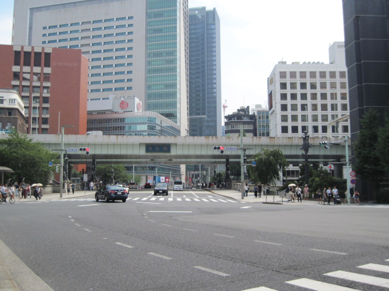 After about 700 meters, I came to the Jimbocho intersection. This is where many people are crossing in the picture. The Hibiya Inlet continued all the way beyond.