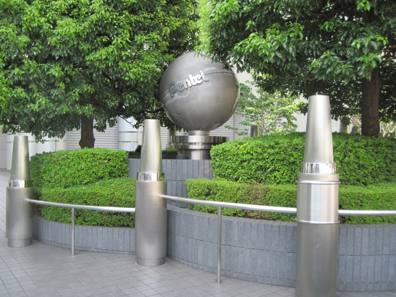After crossing the Nihonbashi River, I found Pentel’s headquarters. There was an object that looked like a crayon. If an ordinary person designed it, they would probably use primary colors, but the way the metal is polished gives it an expression. I like this design a lot.