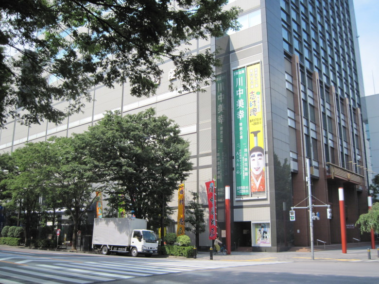 This is the Meiji-za Theater. If I see such a banner while I am running, I wonder if some runners will get a pain in their side from laughing and quit running. I am very worried.