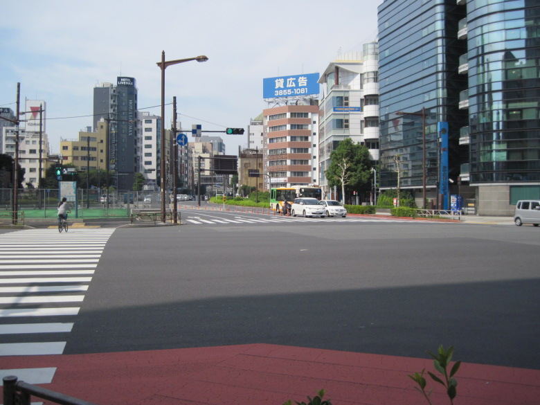 This is the Asakusabashi intersection. After passing through this intersection, you will meet Route 6 coming from the left.