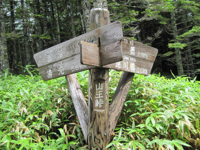 I reached the Sanno Pass almost an hour after I started climbing. It says that it is 2.1km to Koutoku, so it took twice as long as it would have on flat terrain.