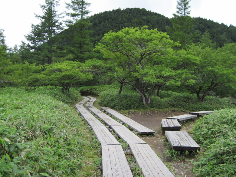 We are now at Karenuma Swamp. In the upper left corner of the photo, the head is cut off, but it’s Orogurayama at an altitude of 2,020 meters. I’m not familiar with this word. It may be of Ainu origin.