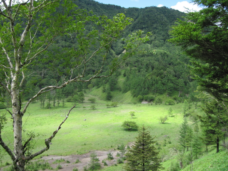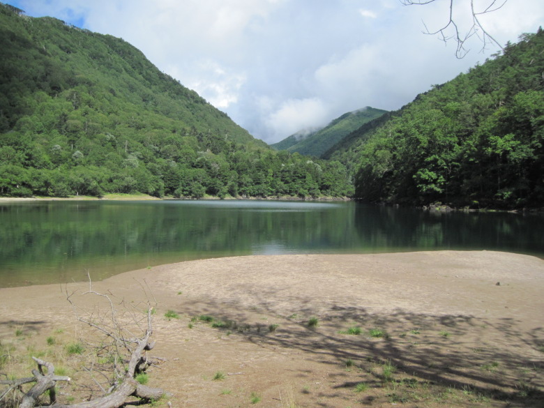 On the other side of Lake Karikomi, the low point between the mountains on either side is Kanata Pass, which used to be a road leading to Kuriyama Village, but is now abandoned.