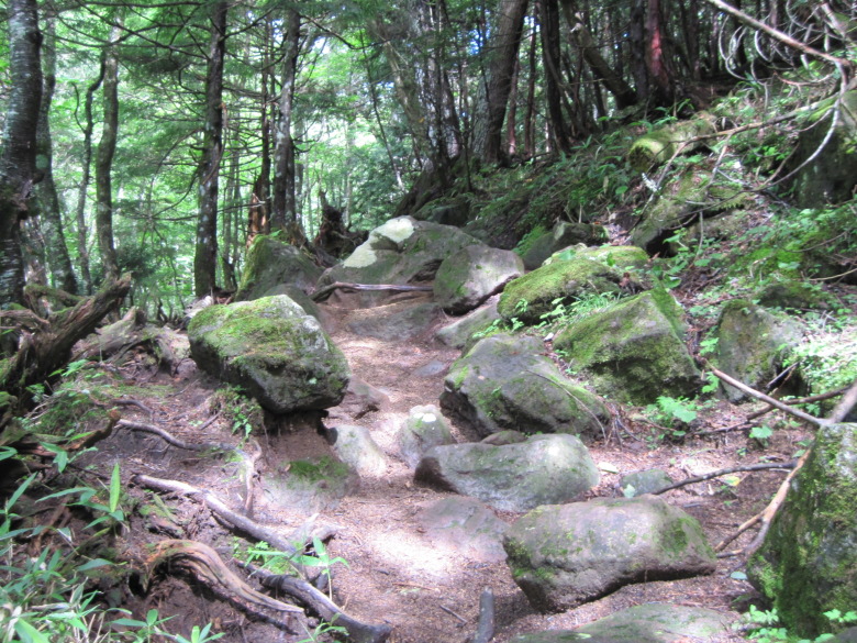 From Karenuma Swamp, the trail continues with not much elevation gain. However, there are mossy fallen trees and mossy stones strewn underfoot.