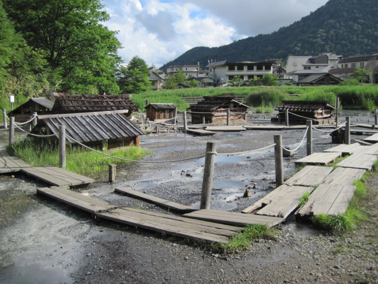 A number of huts have been built, and the hot spring water is drawn from here to each ryokan.