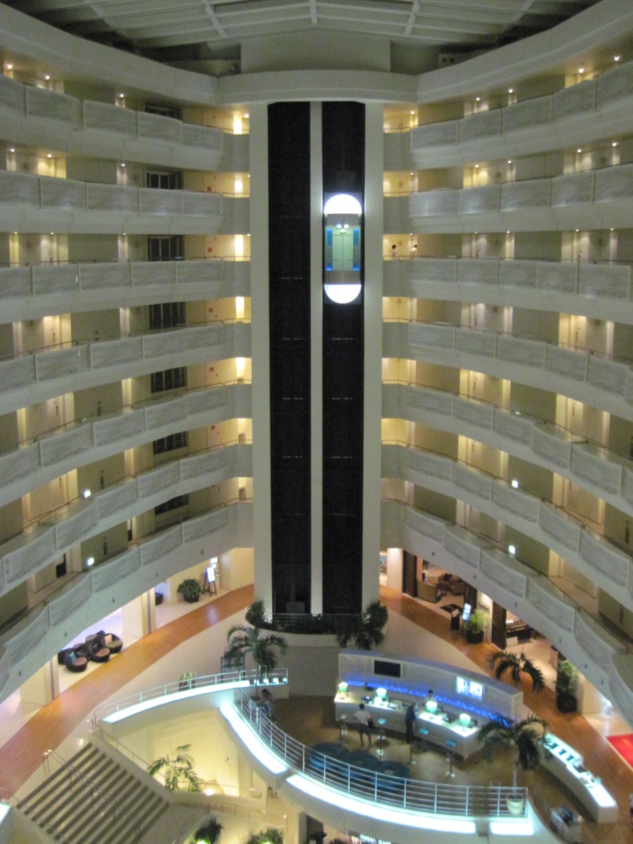 Today I am staying at a hotel shaped like a ship. The shape of the interior was also very unique.