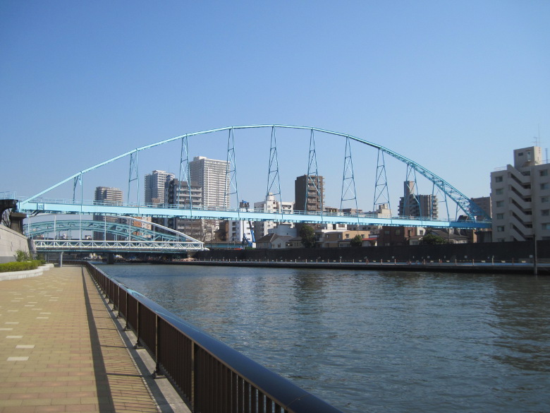 I turned left on Tokyo Route 307 and came to the Toshima Bridge. From here, I walked along the Sumida River.
