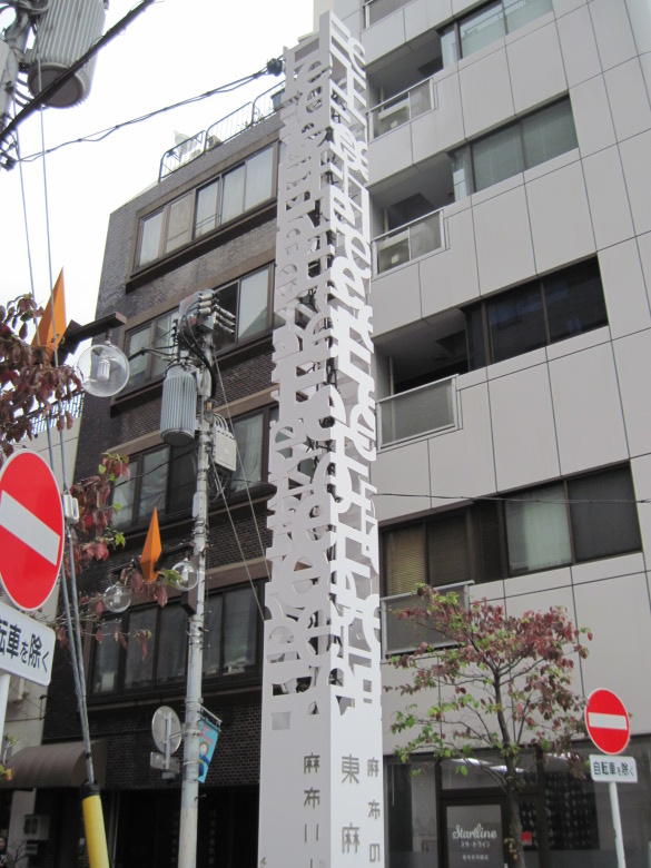 At the entrance to the Higashi Azabu shopping district, I found a strange pillar.