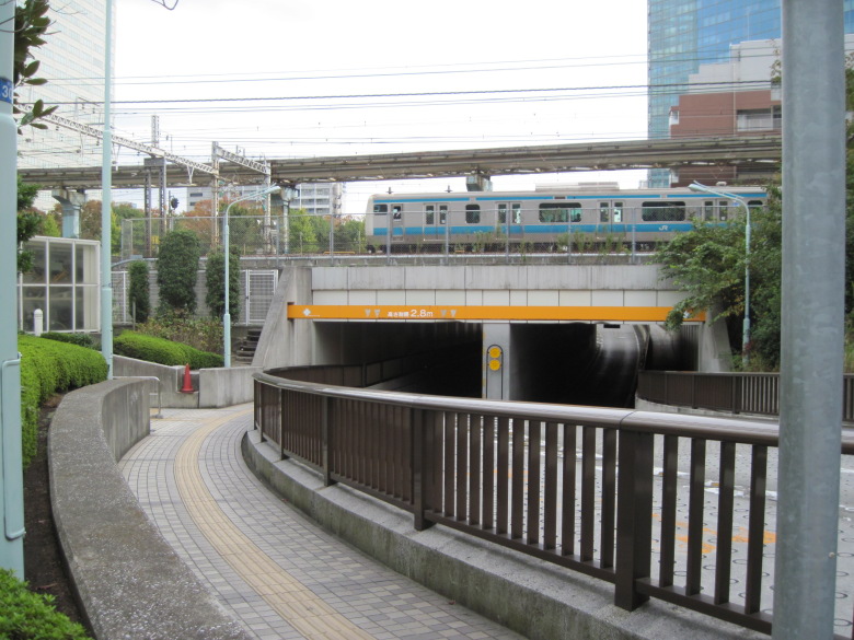 The underpass on the north side of Furukawa was a retro underpass with only a sidewalk illuminated by sodium lamps, but this one is quite stylish and contrasts well with the Keihin Tohoku Line.