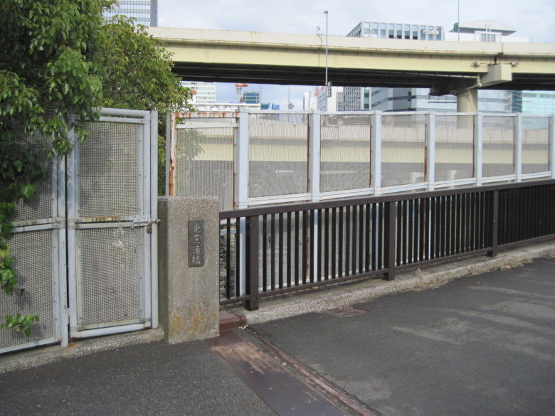 The Shibaura Canal is crossed by the Toshiba Ura Bridge. The name sounds like a Toshiba bridge. That’s natural, since this area is supposed to be the place where Toshiba was founded. There should be a stone monument, but I cannot find it. I wonder where Tanaka Hisashige, the founder of the company, was working on making karakuri dolls such as the Yumihiki-doji.