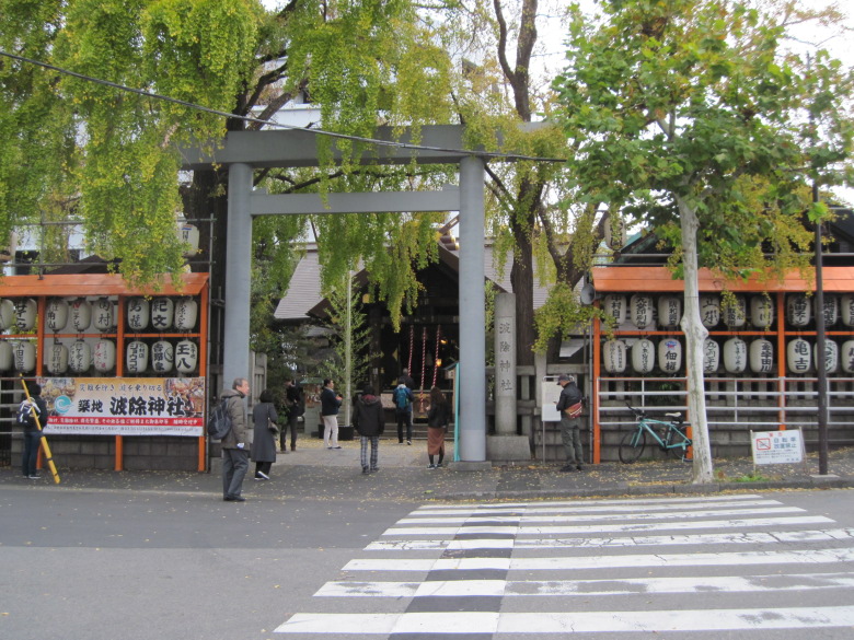 市場に沿って歩くと、波除神社がありました。沢山の人がお参りをしていました。