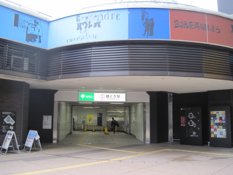 勝どき駅の出口は、半地下で、ちょっとオシャレでした。