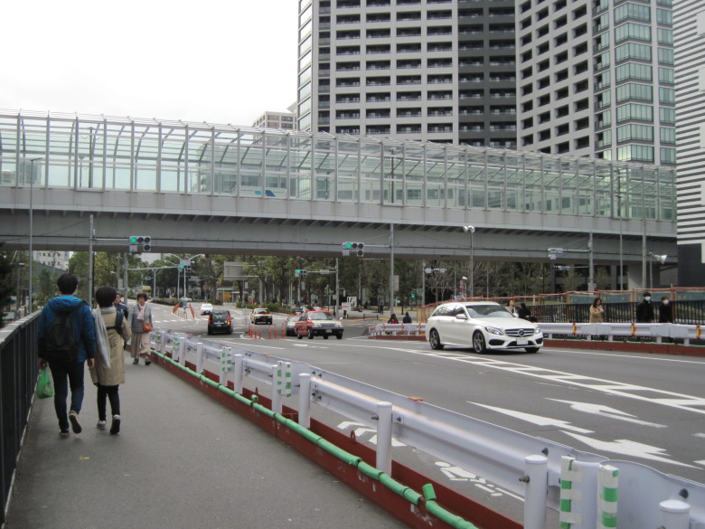 この間まで通れなかった築地大橋が通れるようになっています。