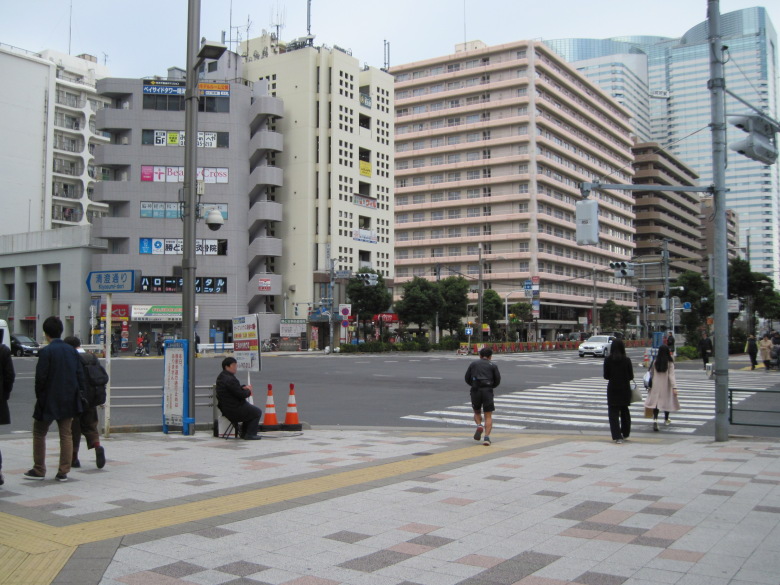 なんてことを考えて歩いていたら、晴海通りに到着。この勝どき駅前の交差点が環状三号線の終点(始点?)のはずです。ふー。一段落です。全然疲れていないけど。
