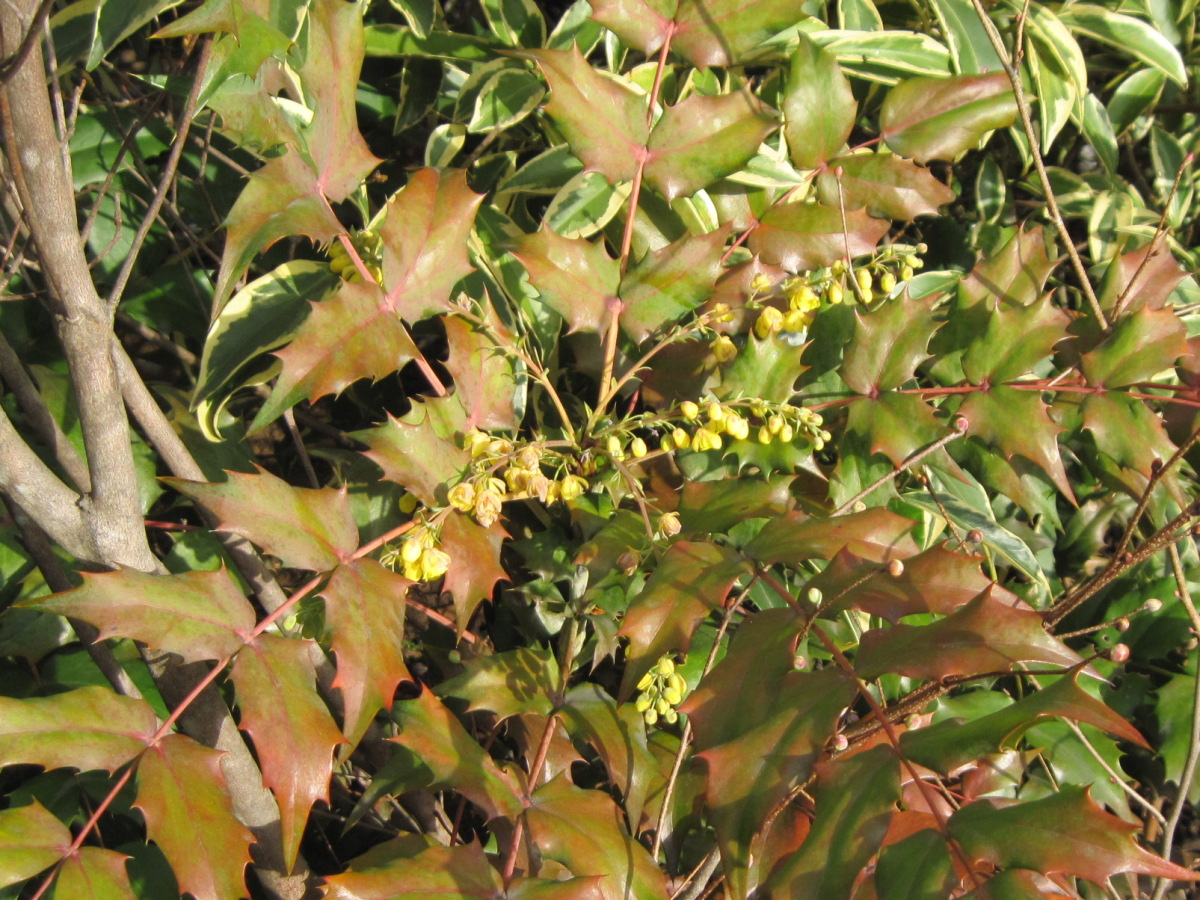 ヒイラギ(柊)って、木篇に冬と書くのに、なぜこんな春先に咲くのかと思ったら、これは、ヒイラギナンテンという別種でした。メギ科だそうです。