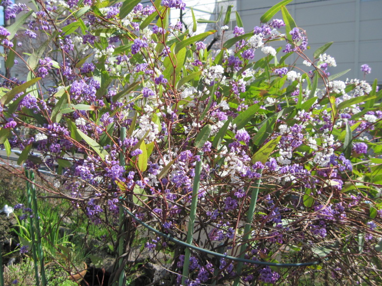 この季節、本当にいろいろな花が咲いています。こちらはハーデンベルギア(小町藤)。