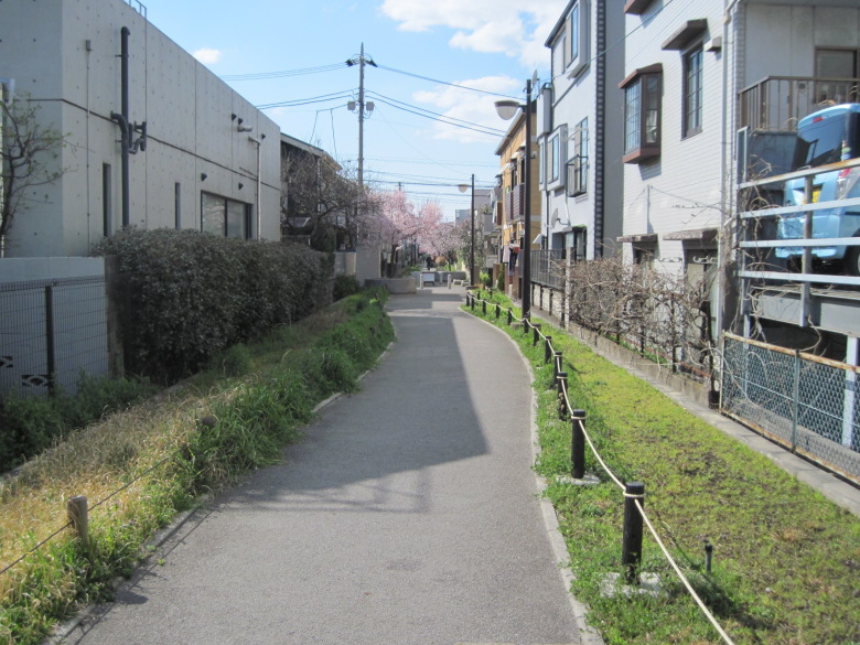 国道246号を越えた上流側は暗渠になっているようで、その上が目黒川緑道として整備されています。