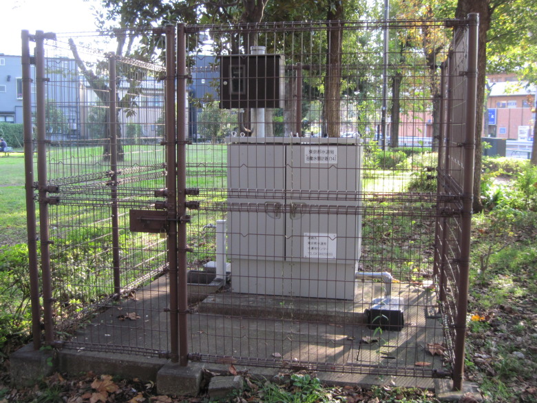 先ほど、電線が通っているかと思ったアーチ橋の先は、こちらになります。東京水道局の自動水質計器があるので、アーチ橋は水道を通しているようです。