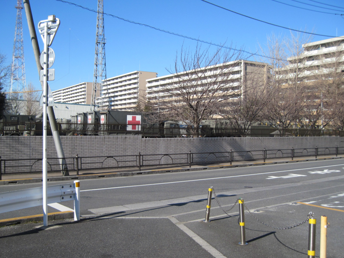 駐屯地は、環八と国道254号線に沿ってそれぞれ700mくらい続いています。