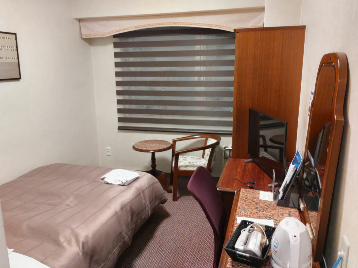 部屋の中はこんな感じ。必要にして十分です。予約は前日に取りました。