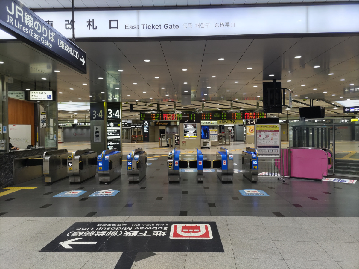 新幹線の改札口はシャッターがまだおりていました。でも在来線は既に営業していました。女性の駅員さんに挨拶しつつ改札を通ります。