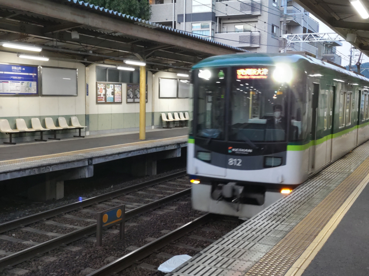 手前の鉄道は京阪本線です。