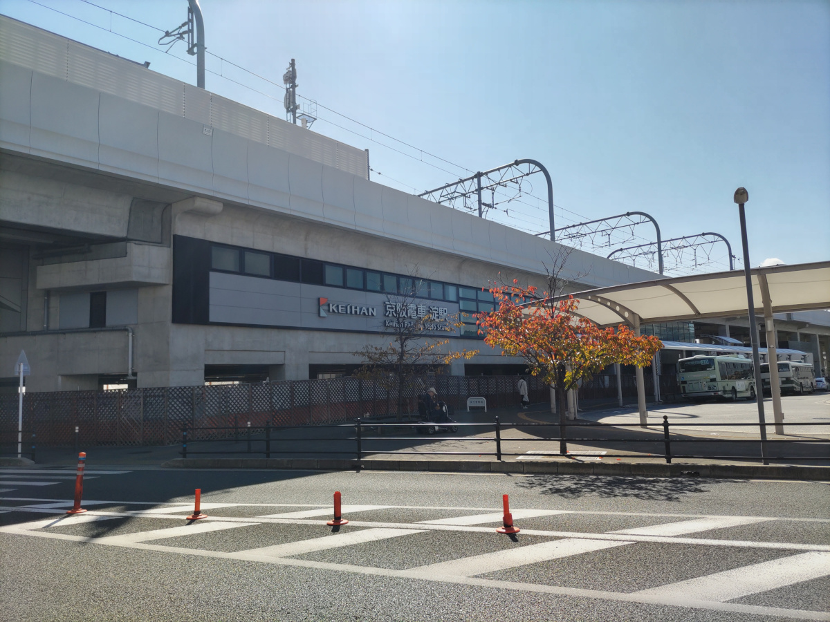 淀駅です。大きいです。このバスが止まっているところのもう少し先に淀城跡があるようです。でも、歩いていた時は気付きませんでした。