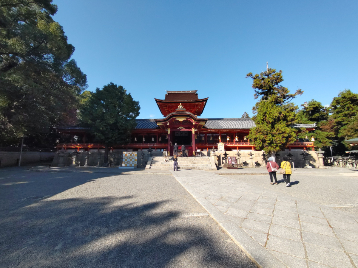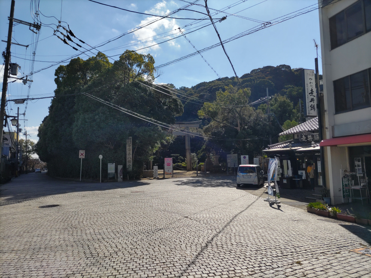 付近で名所と言えば、石清水八幡宮です。ケーブルカーがありますが、街道歩きを始めたら、文明の利器は使いたくないので、勿論歩いて登ります。標高は120mくらいです。本宮10棟は2016年から国宝に指定されています。